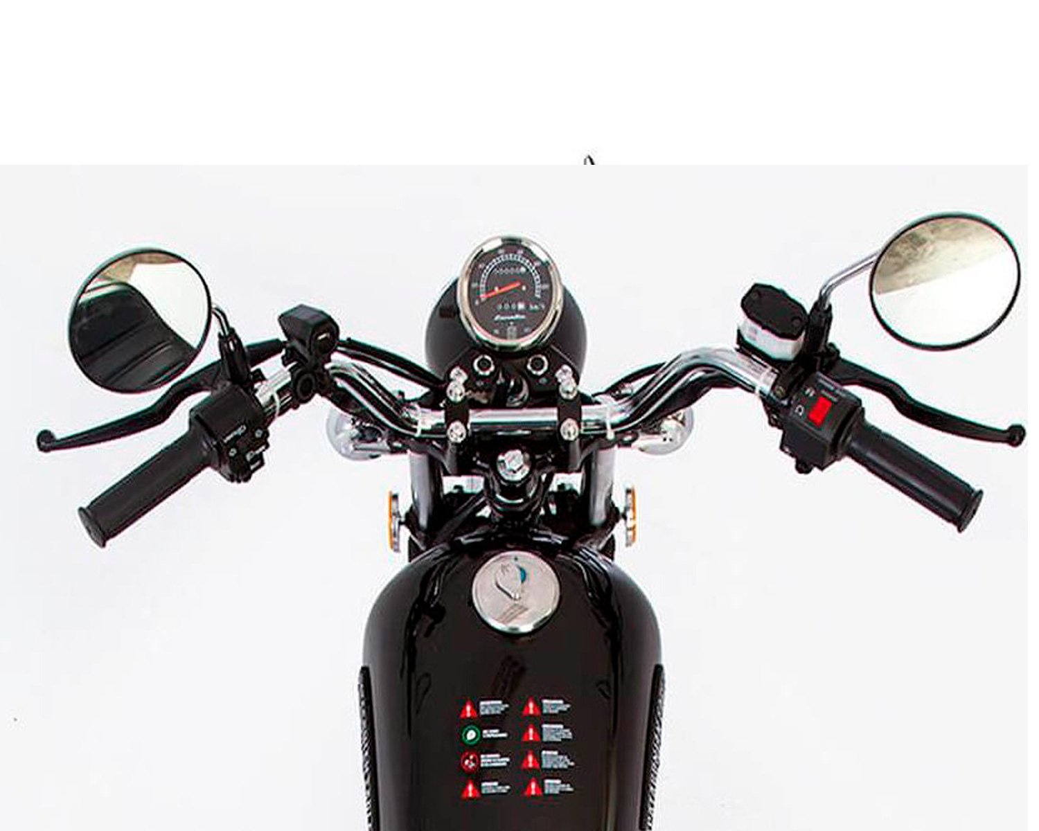 🔹 Estilo chopper con detalles cromados, tanque en forma de lágrima y asiento bajo. -